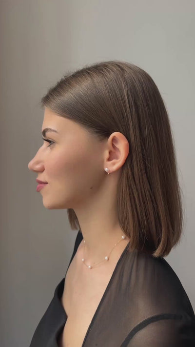 Elegant Nine pearl necklace featuring seven lustrous round pearls delicately suspended on a refined chain. A timeless piece that effortlessly elevates any ensemble with understated luxury and grace.
